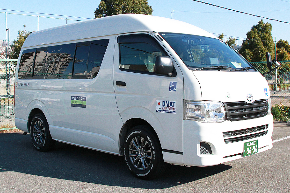 | 乗車定員 | 車椅子2台+付添い同乗者は5名まで可能です 車椅子に乗ったままで乗車できます 障がい者等リフト付タクシー給付券が使えます |