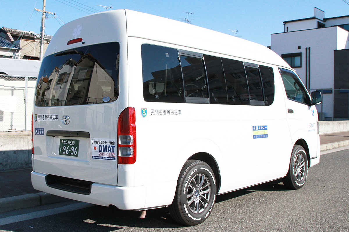 大阪-生野区の介護タクシー 啓では、要介護1以上の要介護者の方を車椅子やストレッチャーのままで乗車していただけます。 運転手は介護職員初任者研修ヘルパー2級)などの資格を持ち、安心・安全に乗降や外出のサポートさせていただきます。通院、入退院、買い物、散歩、旅行、観光など、多目的にご利用いただけます。特に「啓」では、大阪府下に留まらず、大阪発着でしたら遠方まで外出のサポートをいたします。例えば埼玉県への送迎実績もございます。遠方のご利用者様もご遠慮なくお申し付けください。もちろん複数の同乗者様にもお乗りいただけます。詳細はページ下部に掲載しました「車両紹介」をご確認ください。